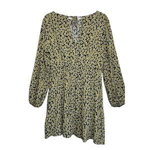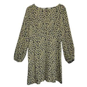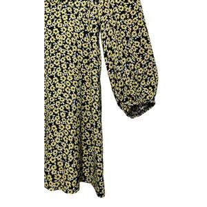 Lightweight viscose dress in a vibrant yellow multi sunflower print. Features a flattering silhouette with long sleeves, tailored waist, and above-the-knee length. Size 14, but fits more like a 10–12. Excellent pre-loved condition.