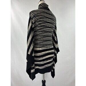 Karen Millen Sweater Cape Black Cream Tan Grey Space Dye Stripe 2 Poncho - has slots for a belt if wanted
