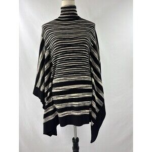 Karen Millen Sweater Cape Black Cream Tan Grey Space Dye Stripe 2 Poncho