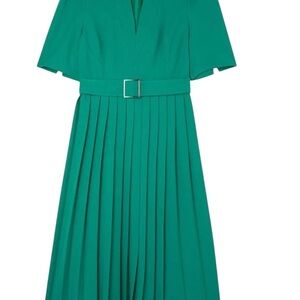 Karen Millen Tailored Structured Crepe Pleat Belted Midi Dress Size 6 NWT