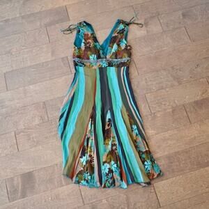 Karen Millen V Neck Sleeveless Floral Dress Multicolor Womens Size 8