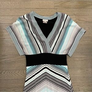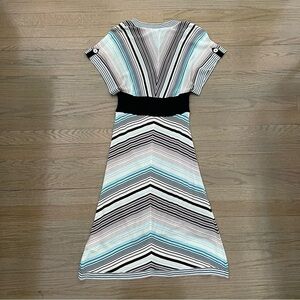 Karen Millen V Neck Striped Short Sleeve Knit Dress Size 1 XS - Small