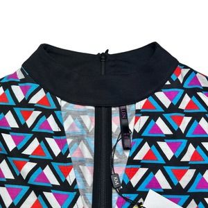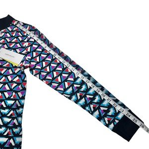New with tags women’s Karen Millen geometric stretch long sleeve choker blouse with sheer panel arm sleeve detail.