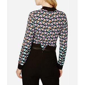 Karen Millen | Women | Geometric Stretch Long Sleeve Choker Blouse | Size 6 US