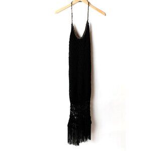 Karen Millen Women's L Black Embroidered Maxi Dress Summer with Fringe