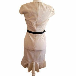 Karen Millen Womens Sheath Dress Ivory Belted Cap Sleeve Zip Up Stretch 8 New