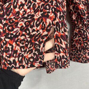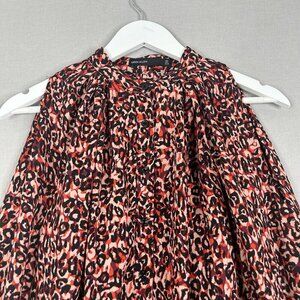 Karen Millen Womens Top 2 Red Leopard Button Blouse Cold Shoulder Bell Sleeve