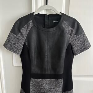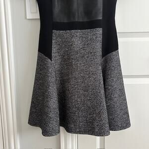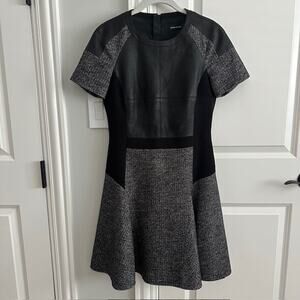 Karen Millen Wool Blend Herringbone Tweed Faux Leather Dress Size: US 8 UK 12