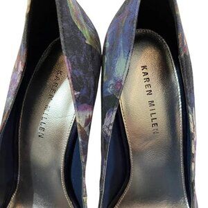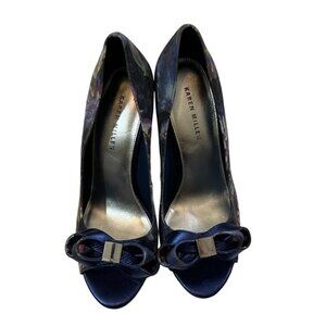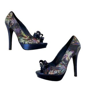 Karen Millen heels Women's 38 US 7 blue purple floral fabric peep toe heels bow