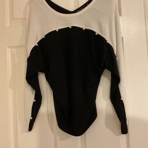 Karen Millen Color Block Black and Ivory Sweater with Pearl Trim across front and on sleeves