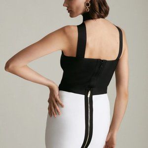 Sculpt your silhouette with this curve-contouring bandage top. Constructed from recycled fine knit panels, its unique double-strap neckline and open back make it a style to remember.