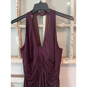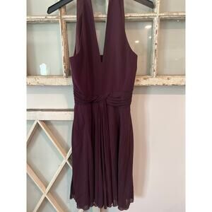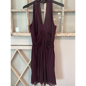 Karen Millen size 8 dark plum colored mini dress with a halter neck. Excellent condition. Zips on the side. Measures 17” from armpit to armpit. 14” across the waist and it is 39” long.