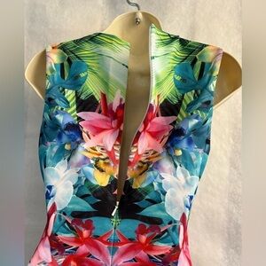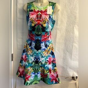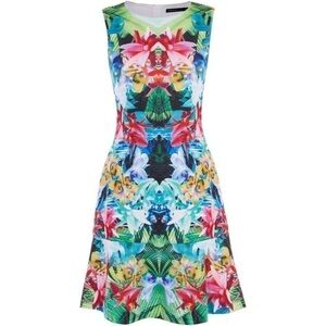 Karen Millen tropical print sleeveless scuba skater dress multi NWT Sz-4 T1