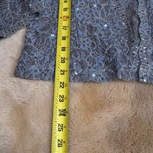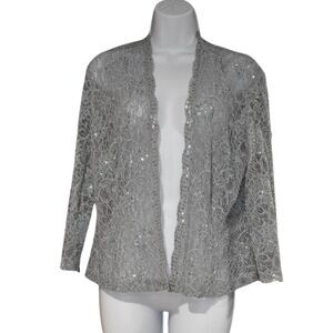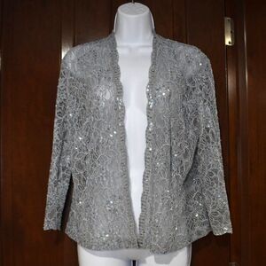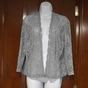 Karen Miller VTG Sequin Blazer L Light Blue Sheer Open Cardigan Glam Beaded