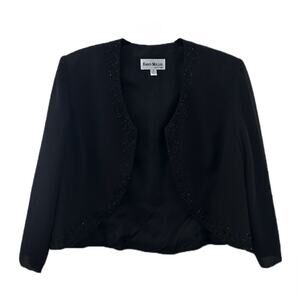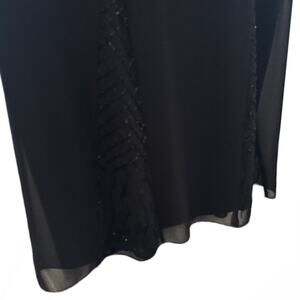 This Karen Miller 2 piece set is perfect for any formal occasion. The black maxi dress with a sweetheart neckline and sleeveless design is adorned with beaded accents and a zip closure. The dress is lined and comes with a matching jacket. The set is made of polyester and is dry clean only.