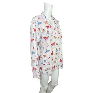 Karen Neuburger Live Love Lounge Pajama Top Light Grey Dogs Medium
