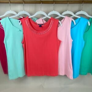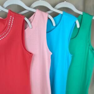 Karen Scott 100% Cotton Tank Bundle Scoop Neck Embellished sz Medium Pastel