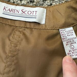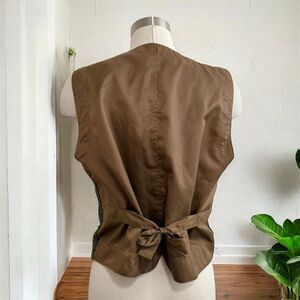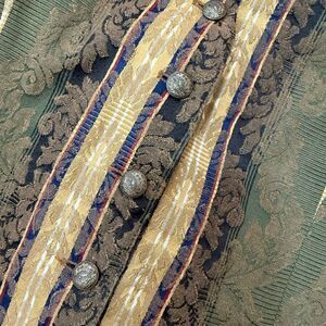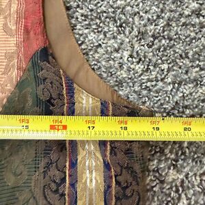 Karen Scott stripe tapestry ornate embroidered vest. Satin back. Metal buttons.