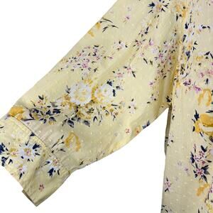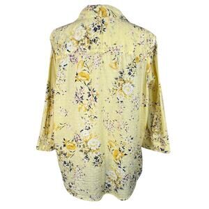 Karen Scott 1X-Large Top Floral Swiss Dots Button-Up 3/4 Sleeves Lightweight