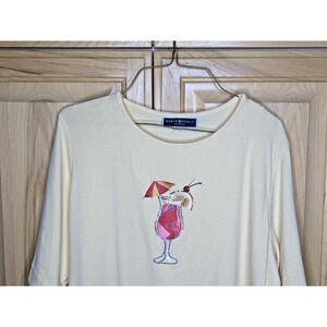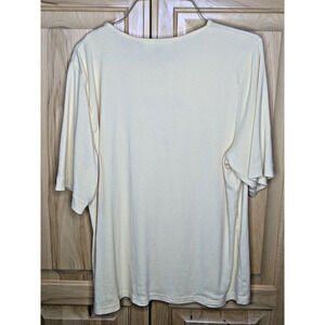 Karen Scott 2X Tee Shirt Yellow Cotton Short Sleeve beaded Tropical Cocktail