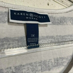 Karen Scott 3X Plus-size blue white striped top with rhinestone Star