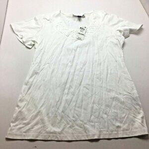Karen Scott Basketweave-Trim Flutter-Sleeve Top Color: White Size: Small