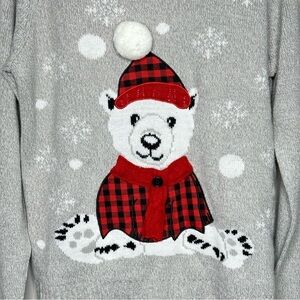 Karen Scott Bear Holiday Sweater With Pom Pom Long Sleeve Womens Size L