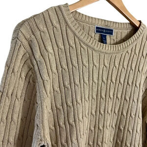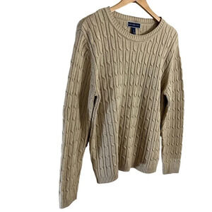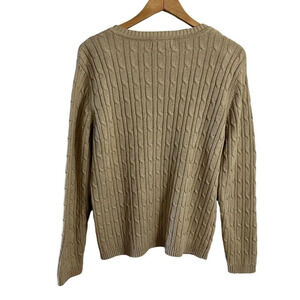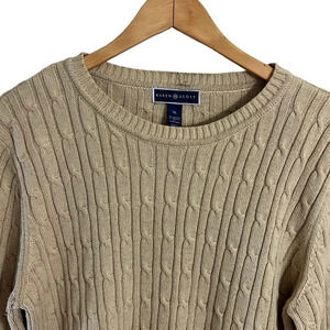 Karen Scott Beige Cable Knit Sweater XL Gold Metallic Long Sleeves Cotton Blend