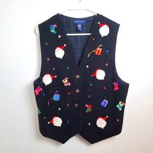 Karen Scott Black Embroidered Christmas Santa Bells Presents Stockings Vest Sz L