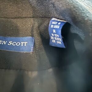 New without tags Karen Scott (Macy’s) long sleeve black fully lined blazer. Two pockets on front. Great for work or to wear with jeans. Pit to pit 23”, length is 29”.