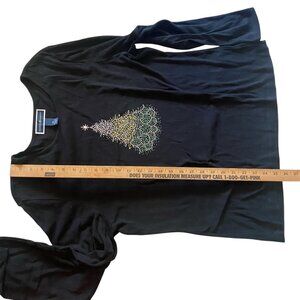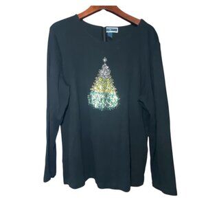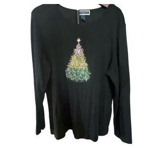 Karen Scott Black Long Sleeve Top With Rhinestone Christmas Tree Design Size XL