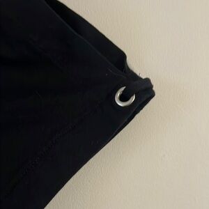 Karen Scott classic black top with short sleeves. Features metal accents for a modern touch. Size XL