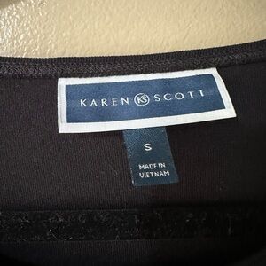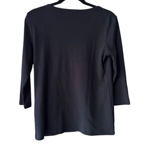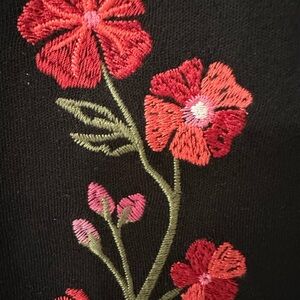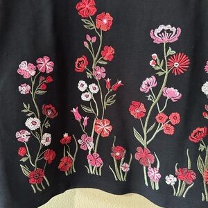 Karen Scott Black Top with Flower/Stem Embroidery