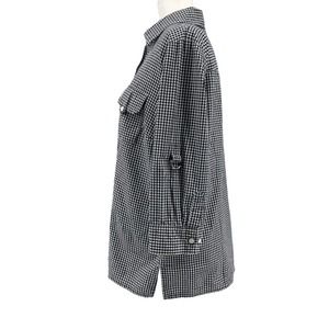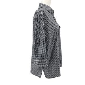 Karen Scott Black and White Gingham 3/4 Sleeve Button Front Collared Top