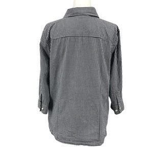 Karen Scott Black and White Checkered 3/4 Sleeve Button Front Collared Top