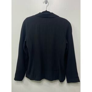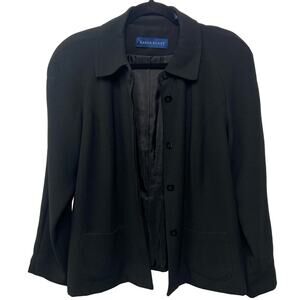 Karen Scott Padded Shoulder Sweater Blazer Button Front Collared Black Womens 8