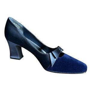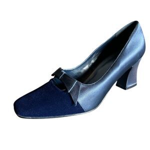 Karen Scott Blue Velvet Satin Bow Detail Square Toe & Heel Sz 7.5