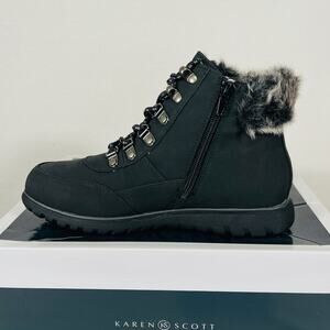Karen Scott Boots Women's 6.5 Black Wanona Fur Lined Lace Up Combat Booties New with box