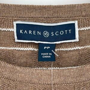 Karen Scott Boxstitch Curved Hem Sweater Women PP Chestnut Heather Tan White NWT