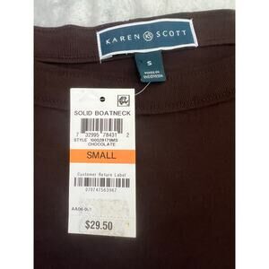 Karen Scott Brown Boatneck Knit Blouse Top Short Sleeve Woman Size Small NWT