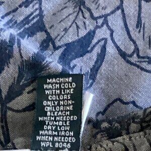 This Karen Scott button-up top in size small features a floral pattern, 3/4 roll tab sleeves, and a collared neckline with button closure. Made from 100% cotton chambray fabric, it is machine washable and designed for casual or business occasions. The top also includes silver buttons, a flap button pocket, and is accented with a blend of hipster, coastal grandma, flower, country chic, and bohemian themes. With a regular fit and easy care features, this top is perfect for the warmer seasons of summer, fall, and spring.