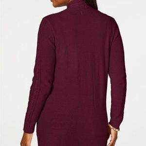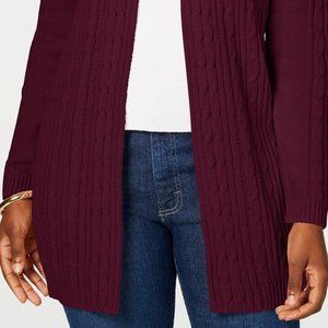 Layer on stylish warmth with this Karen Scott cardigan. In classic cable knit, the relaxed silhouette features an open front for versatile options.