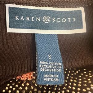 Karen Scott Camel Graphic T-Shirt Top Womens Small Brown 3/4 Sleeve Cotton