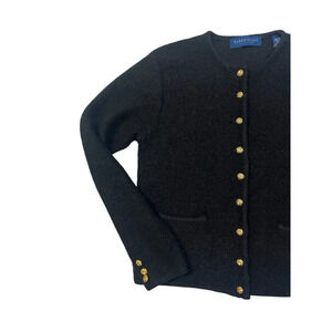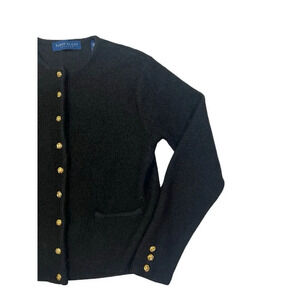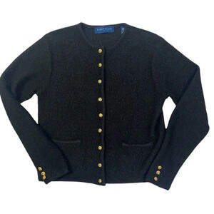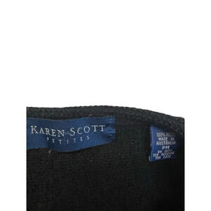 Karen Scott Cardigan Sweater Petite Medium Black 100% Pure Wool Classic Grandma