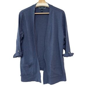 Karen Scott Cardigan Womens 0X Top Blue 3/4 Roll Tab Sleeve Open Front Pocket