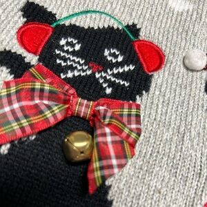 Karen Scott Christmas or Holiday Sweater Cats and Polka Dots, Jingle bell detail