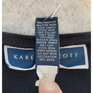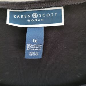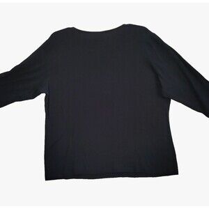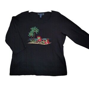 Karen Scott Christmas T-Shirt 1X Black Beach Palm Trees 3/4 Sleeves Embroidered