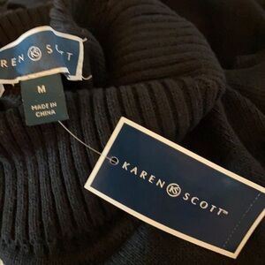 Smart bird's eye stitching gives a textured touch and colorblocked style to this cotton turtleneck sweater from Karen Scott.