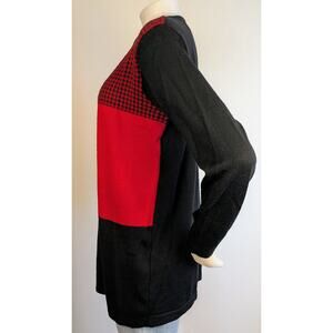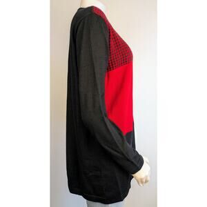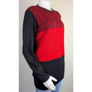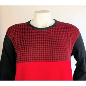 Karen Scott Colorblock Black Red Houndstooth Crewneck Holiday Sweater Size Large