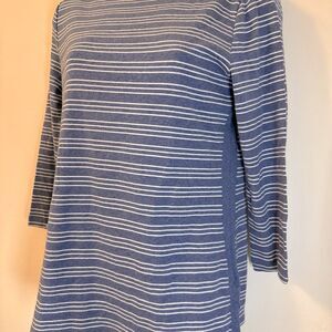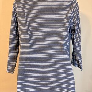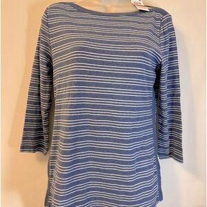 Karen Scott Core Knits Heather Indigo Blue Striped Long Sleeve Tee Sz XS NWT